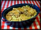 | Fry pork chops w/salt and pepper until browned. Remove chops. Add water and 1 tablespoon of garlic powder to frying pan. Put sauerkraut and 1 onion on the bottom of a roaster pan. Layer pork chops; sprinkle with 1 teaspoon garlic powder. Add cabbage and 1 onion; sprinkle with salt, if desired. Pour water in skillet over the top. Cover and cook until cabbage is tender (approximately 1-1/2 hours) in a 325 degree oven. |